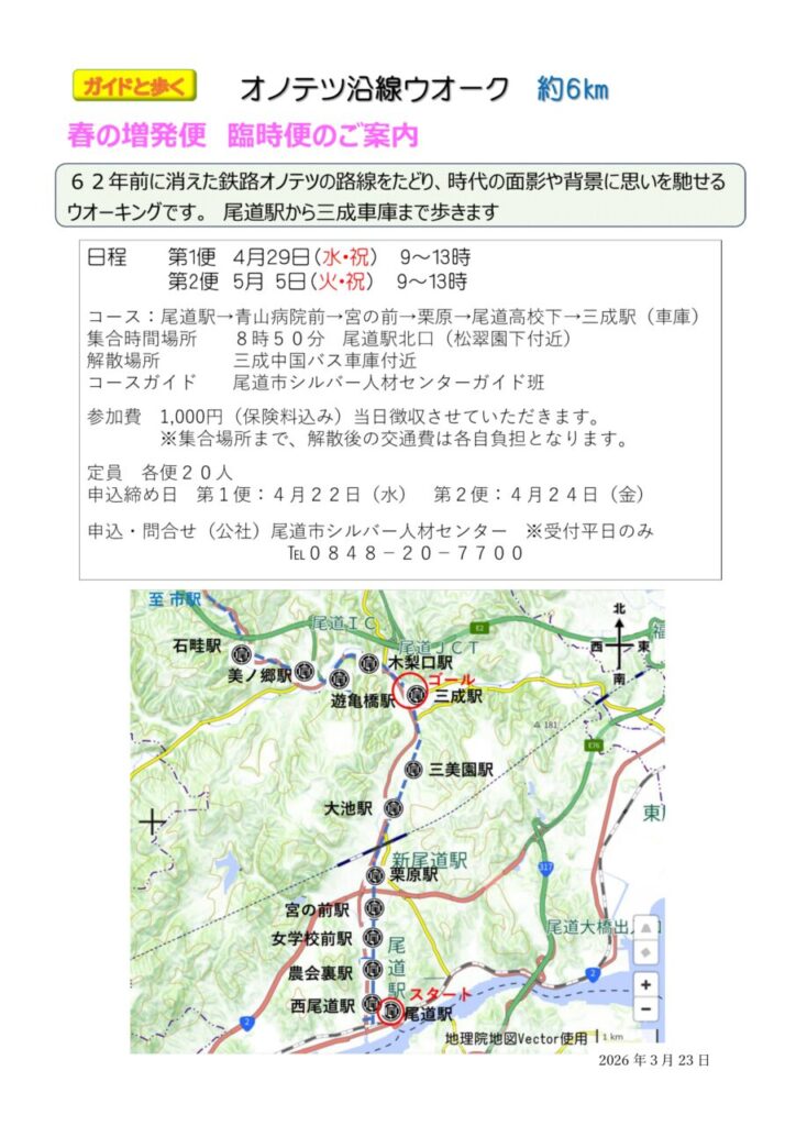 尾道市シルバー人材センターのガイド班が、旧尾道鉄道の沿線をご案内します。