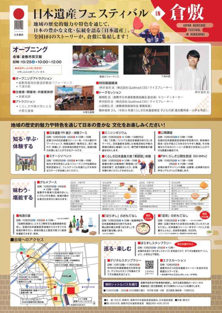 令和7年10月25日(土)・26日(日)、倉敷アイビースクエアにて「日本遺産フェスティバル in 倉敷」が開催されます