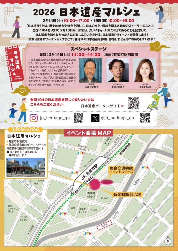東京・有楽町駅前広場&東京交通会館1階イベントスペースにて、「日本遺産マルシェ」が開催されます。