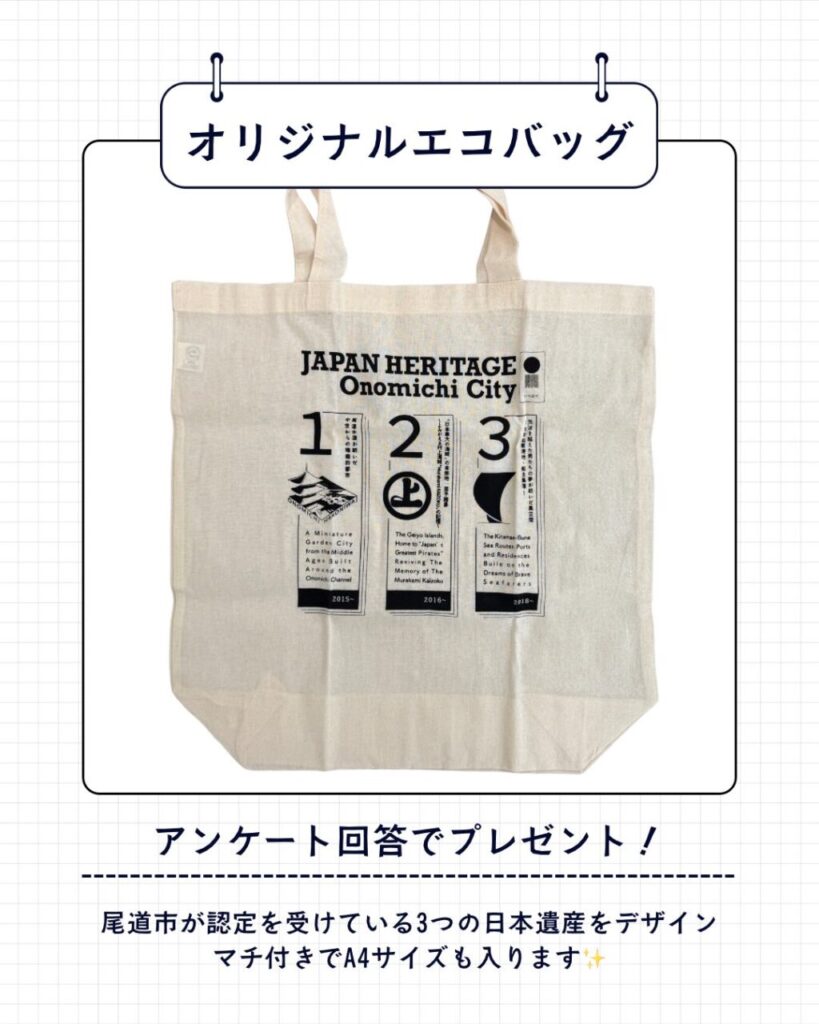オリジナルエコバッグ:尾道市が認定を受けている3つの日本遺産をデザイン